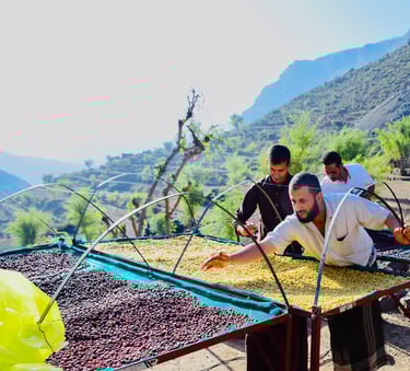 Our coffee comes directly from the motherland — harvested by hand, sun-dried, and stone-milled using methods passed down through generations. We work directly with Yemeni farmers and cooperatives to ensure not only the unmatched quality of every bean, but also fair wages, sustainable practices, and support for local families whose lives are rooted in the soil of Yemen’s highlands.